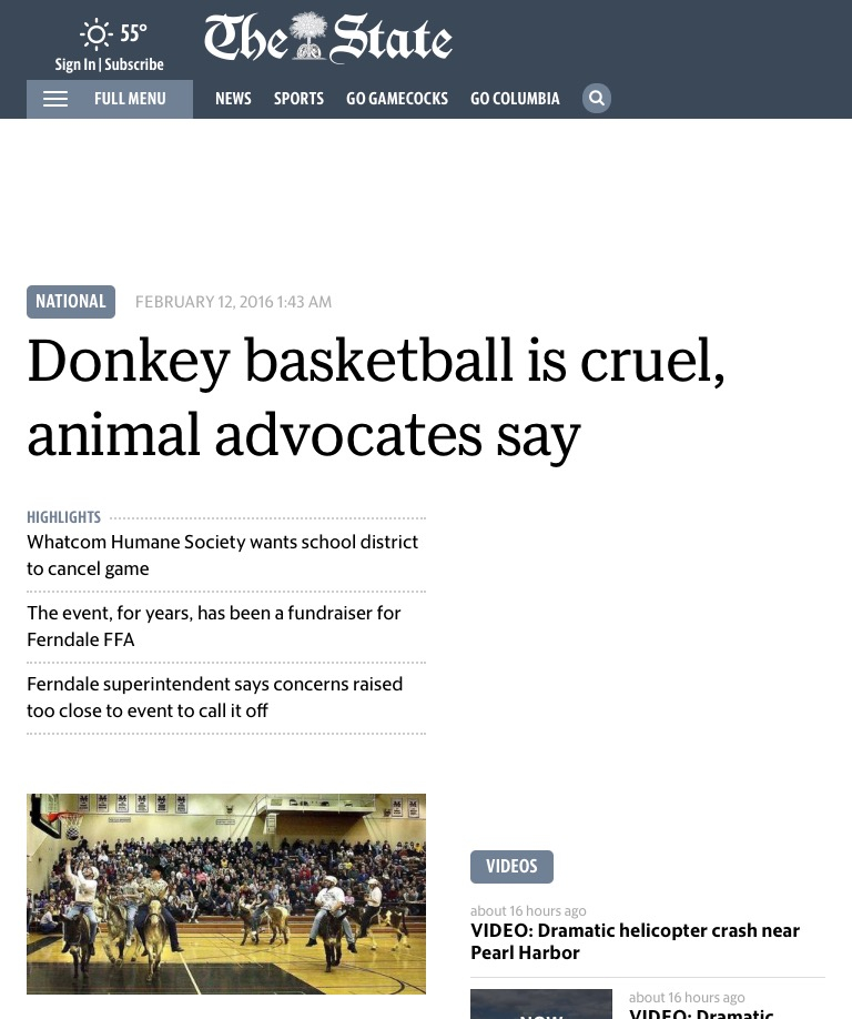 The State donkey Published February 19, 2016 at 768 × 918 in The Power of your Voice: Ferndale Donkey Basketball Controversy is Delivered across the Nation / Noisy Waters Northwest ← Previous Next →
