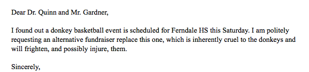 0208 dbb email 6 Published April 22, 2016 at 633 × 148 in Was more diligence due for students and donkeys? Following up on the February 13, 2016 Ferndale Donkey Basketball Event / Sandy Robson ← Previous Next →
