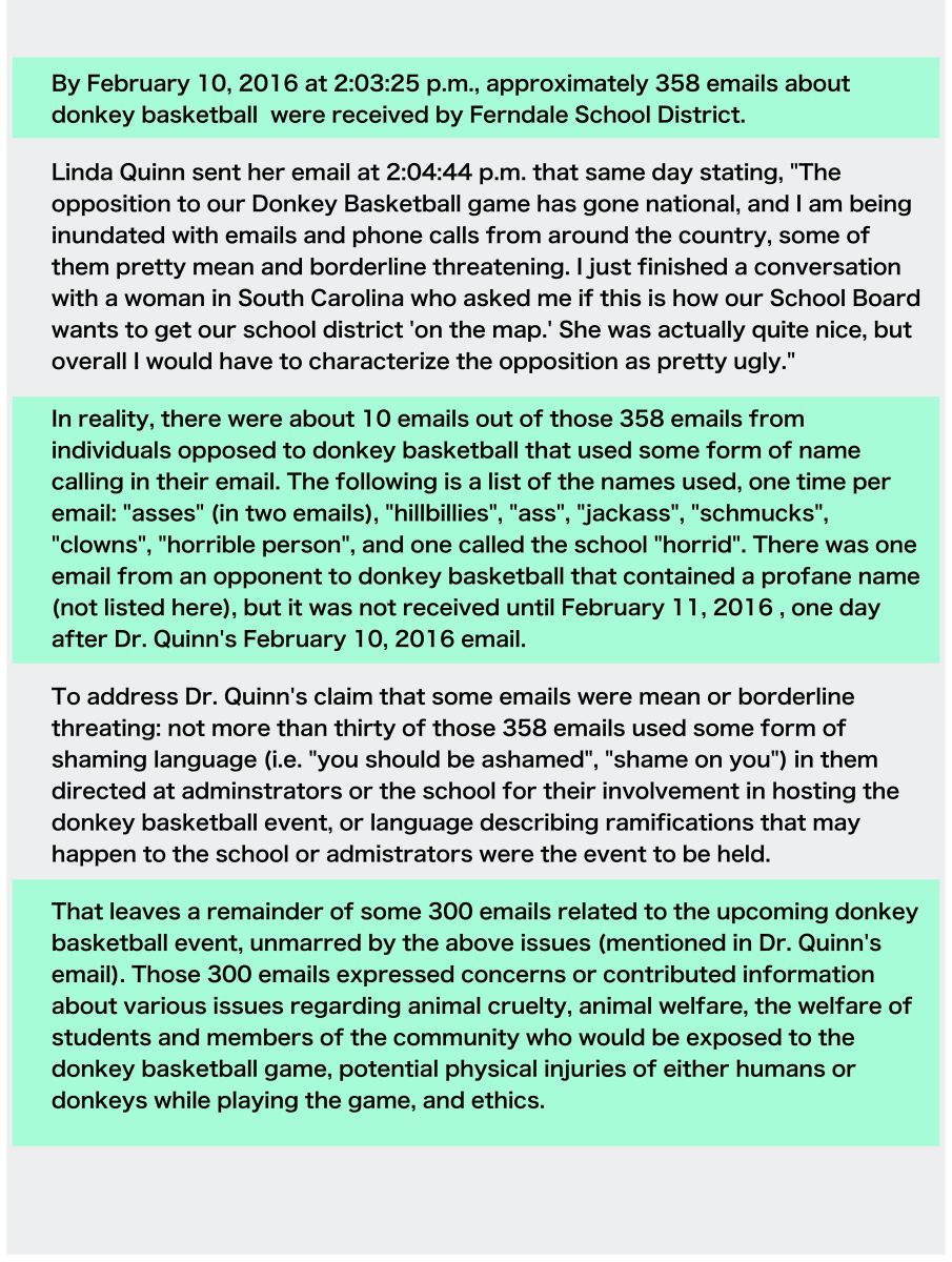 358 emails about donkey basketball Published April 22, 2016 at 4797 × 6364 in Was more diligence due for students and donkeys? Following up on the February 13, 2016 Ferndale Donkey Basketball Event / Sandy Robson ← Previous Next →