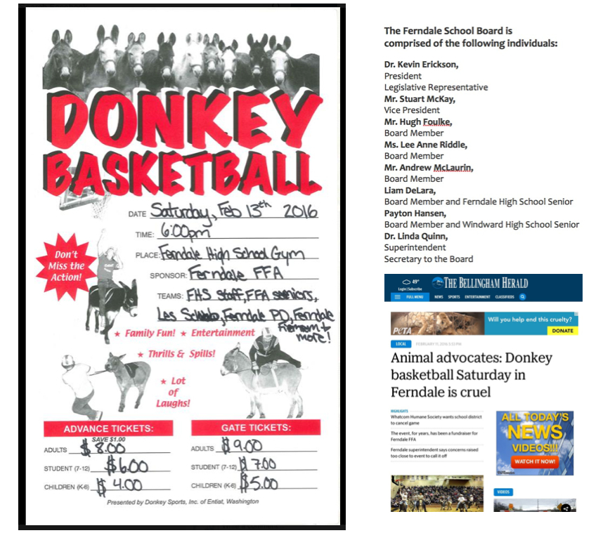 donkey bb poster plus board plus herald Published April 22, 2016 at 868 × 759 in Was more diligence due for students and donkeys? Following up on the February 13, 2016 Ferndale Donkey Basketball Event / Sandy Robson ← Previous Next →