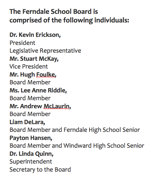 ferndale school board list Published April 22, 2016 at 544 × 646 in Was more diligence due for students and donkeys? Following up on the February 13, 2016 Ferndale Donkey Basketball Event / Sandy Robson ← Previous Next →
