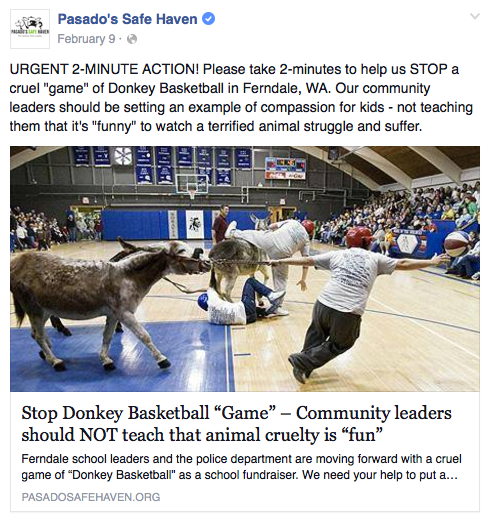 Pasado’s Safe Haven action alert 02092016 Published April 22, 2016 at 489 × 523 in Was more diligence due for students and donkeys? Following up on the February 13, 2016 Ferndale Donkey Basketball Event / Sandy Robson ← Previous Next →