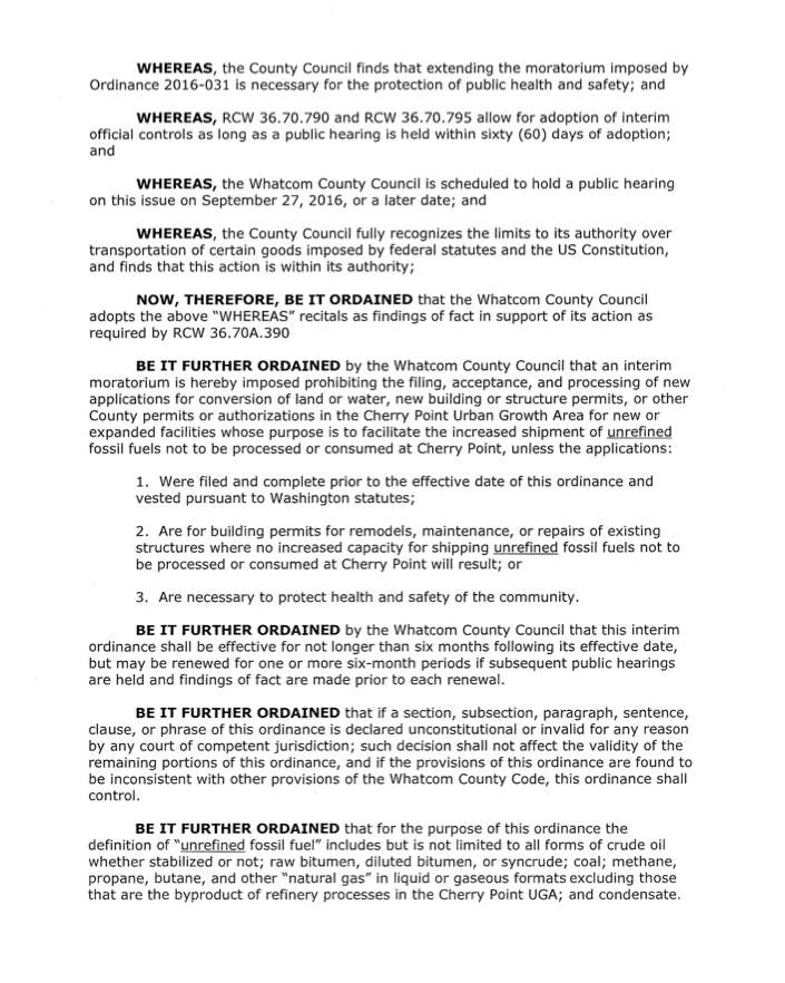 Public Hearing on this ordinance will be held Tuesday, September 27, 2016 at 7 p.m. at 311 Grand Ave., Bellingham. You can view the resolution on the Whatcom County website at this link: http://whatcomcounty.us/DocumentCenter/View/21171