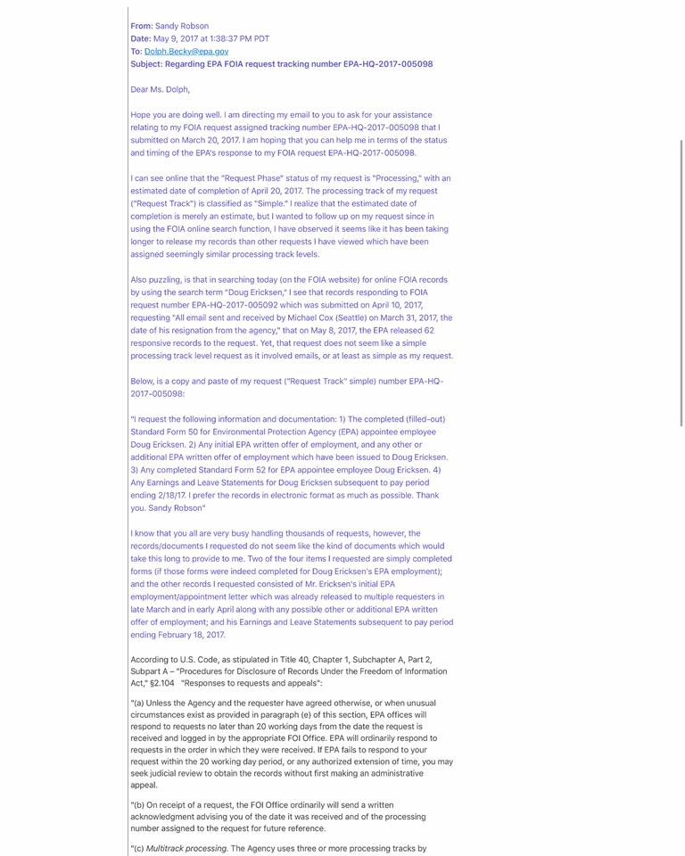 sandy’s email to dolph 050917 Published May 11, 2017 at 768 × 960 in Do you believe in fate? Recent Doug Ericksen FOIA records finally received / Facebook post, Sj Robson ← Previous Next →
