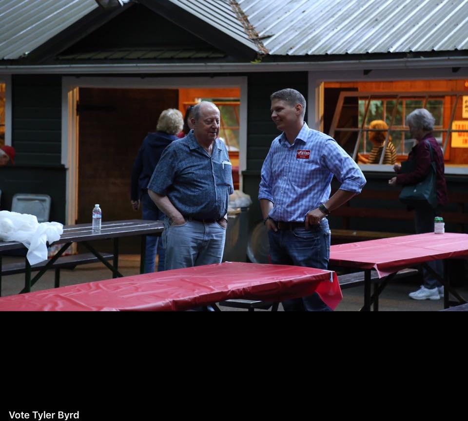 byrd with dow whatcom republicans picnic Published August 23, 2017 at 960 × 864 in You can run (for office), but you can’t hide: Documenting some nonpartisans’ partisanship / Facebook post, Sj Robson ← Previous Screenshot of a July 14, 2017 “Vote Tyler Bird” Facebook post