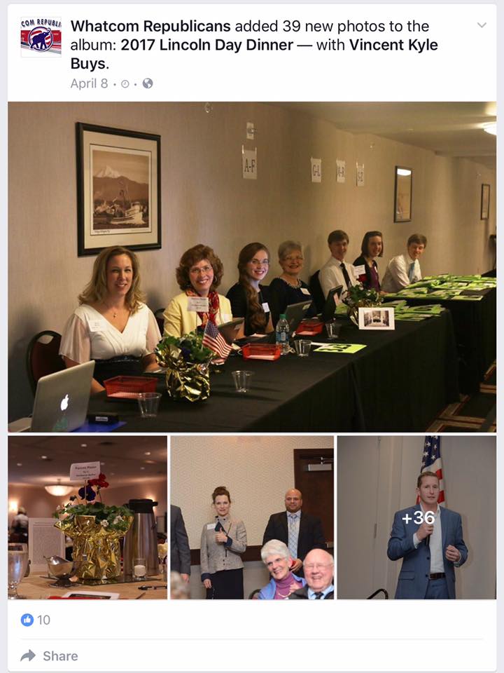 whatcom republicans lincoln day dinner sign in table Published August 23, 2017 at 720 × 960 in You can run (for office), but you can’t hide: Documenting some nonpartisans’ partisanship / Facebook post, Sj Robson ← Previous Next →