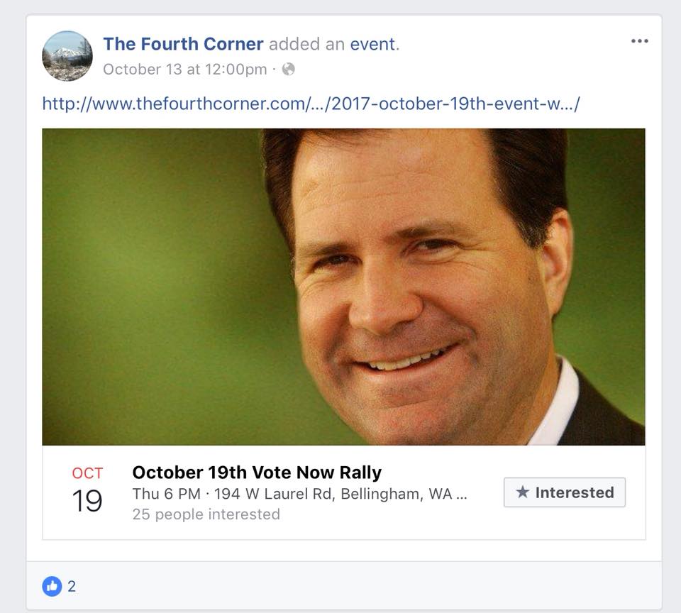 the fourth corner fb post vote now rally Published November 7, 2017 at 960 × 864 in Supposed “non-partisan” event paid for by the Whatcom County Republican Party PAC / Facebook post, Sj Robson ← Previous Next →