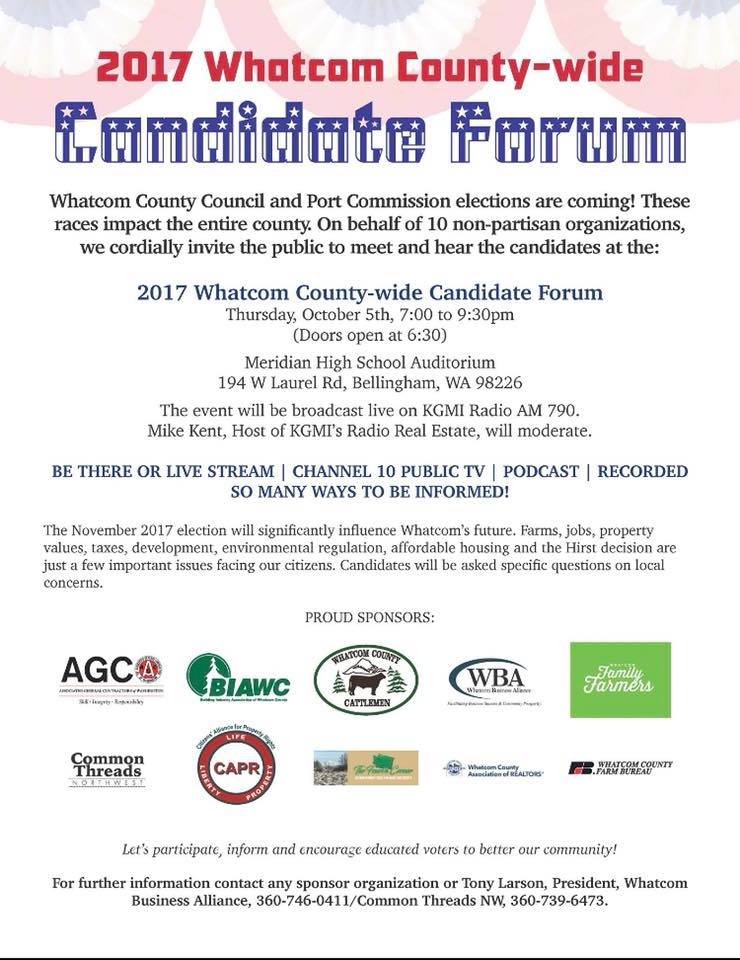 wba ctnw candidate forum poster Published November 7, 2017 at 740 × 960 in Supposed “non-partisan” event paid for by the Whatcom County Republican Party PAC / Facebook post, Sj Robson ← Previous Next →