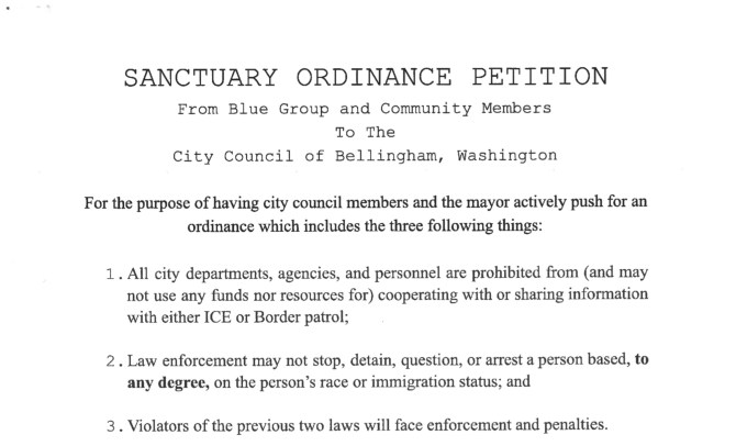 There was a Bellingham Herald article about that February 13, Council meeting the next day after Council Members voted to approve their ordinance, since this was an issue of significant public interest and Council Chambers had been packed with local residents, with close to 30 people speaking in favor of a sanctuary city ordinance, and under half that number speaking in opposition.