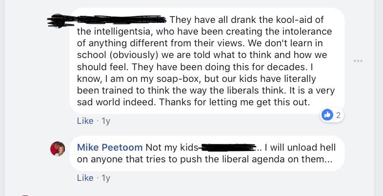 comment about kids in school peetoom Published July 4, 2018 at 785 × 402 in Looking behind the campaign facade of Whatcom County Council candidate Mike Peetoom / Facebook post, Sj Robson Next →