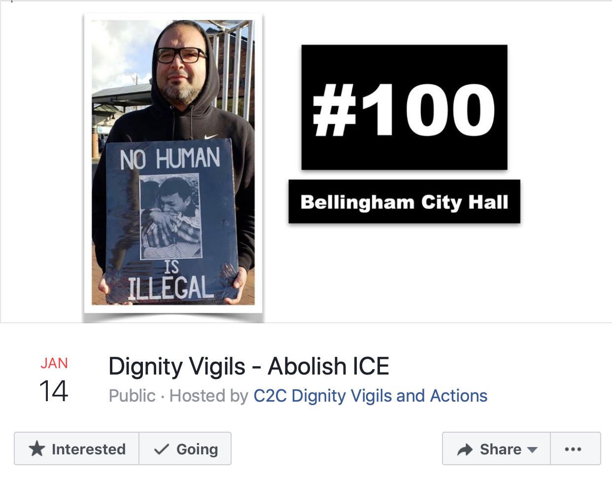 Click the graphic to access the Facebook event for the January 14, 2019 Monday Dignity Vigil at Bellingham City Hall