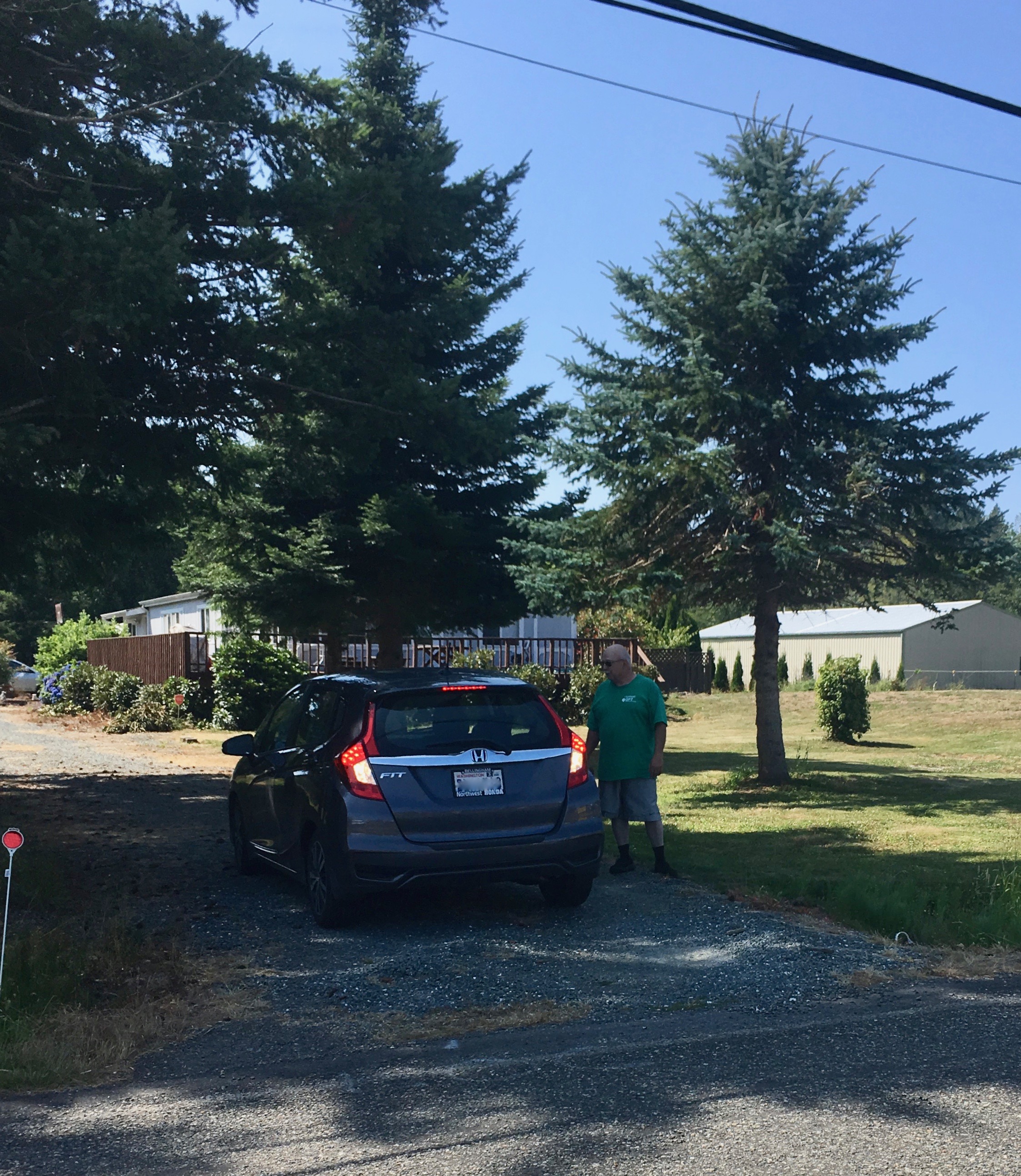 It was hard to say, but there was one recognizably ominous presence in one of the driveways: Charlie Crabtree, an early participant in the Whatcom Tea Party and a long-time official and member of the Trump-supporting Whatcom County Republican Party. There he was in a vintage green GPT t-shirt (from the belligerent and failed Gateway Pacific coal terminal campaign) next to a car with back-up lights on. One legal observer deftly snapped a photo of the license plate as they marched by.