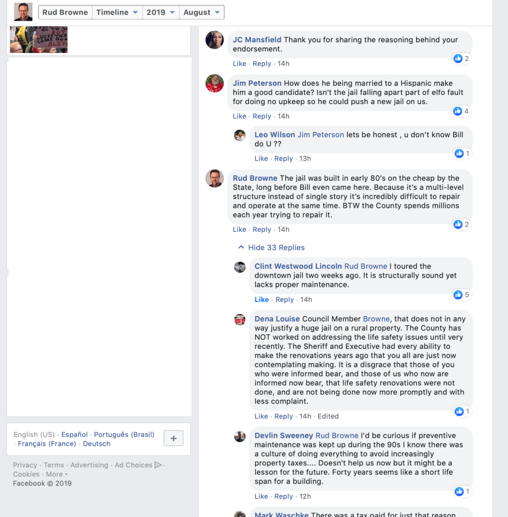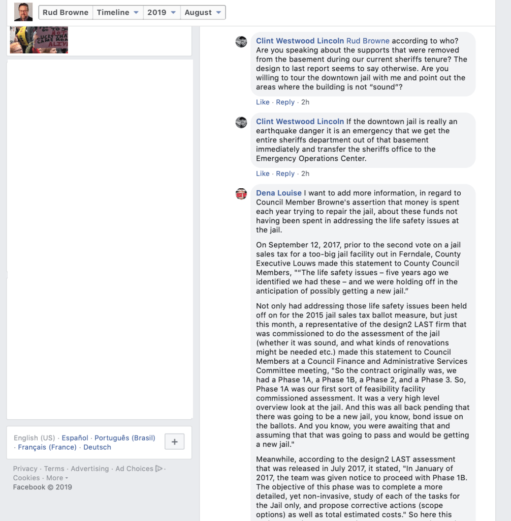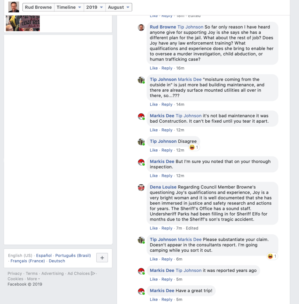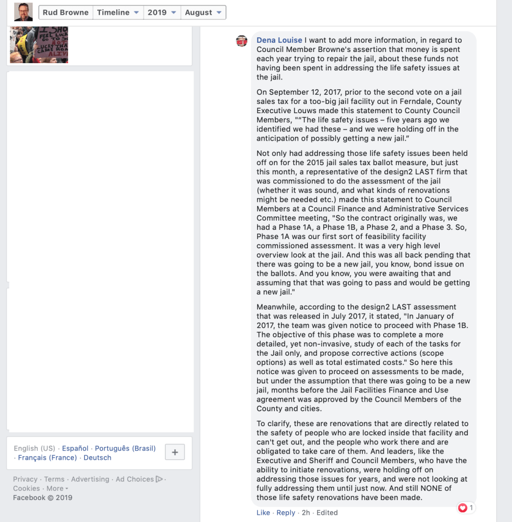On August 20, 2019, Whatcom County Council Member Rud Browne made a Facebook post announcing that County Council Members “unanimously” endorse Whatcom County Sheriff Bill Elfo. That’s his right, but sad that he had to depict it with the initial appearance that Council Members somehow voted to do so. He indicates in a footnote, however, that they did not.