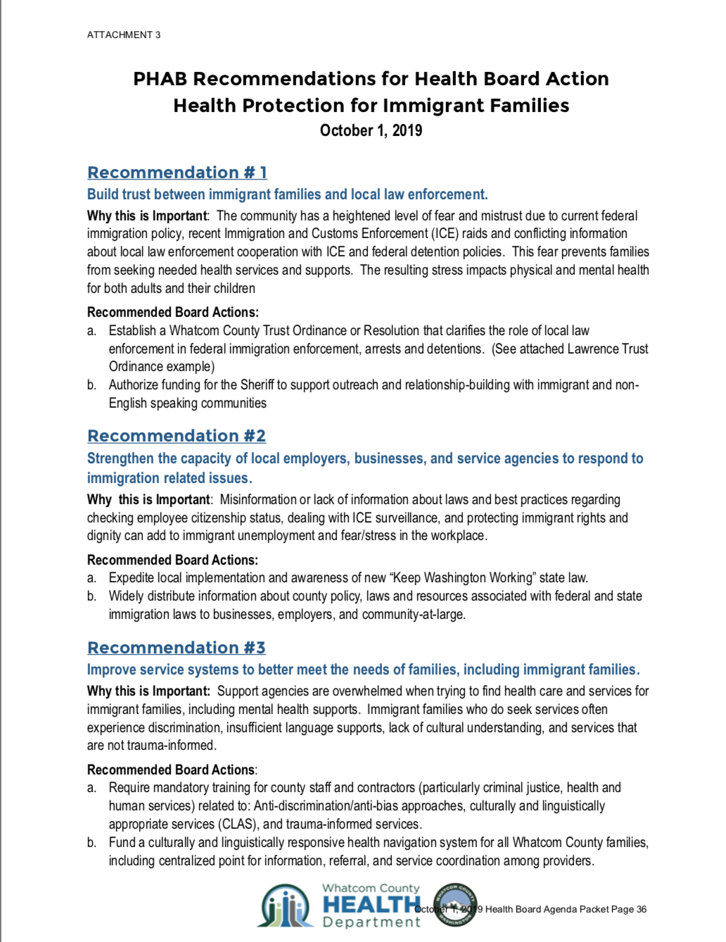 Here is a link for a packet that contains a copy of the full “Health Protection for Immigrant Families In Whatcom County – Whatcom County Public Health Advisory Board (PHAB) Task Force Evaluation Report,” (starting on page 4) as well as the “PHAB Recommendations for Health Board Action Health Protection for Immigrant Families – October 1, 2019” (starting on page 36.): https://whatcom.legistar.com/View.ashx?M=A&ID=675973&GUID=35B5F33E-BEFC-41D9-9D98-5048F1AD4E9F