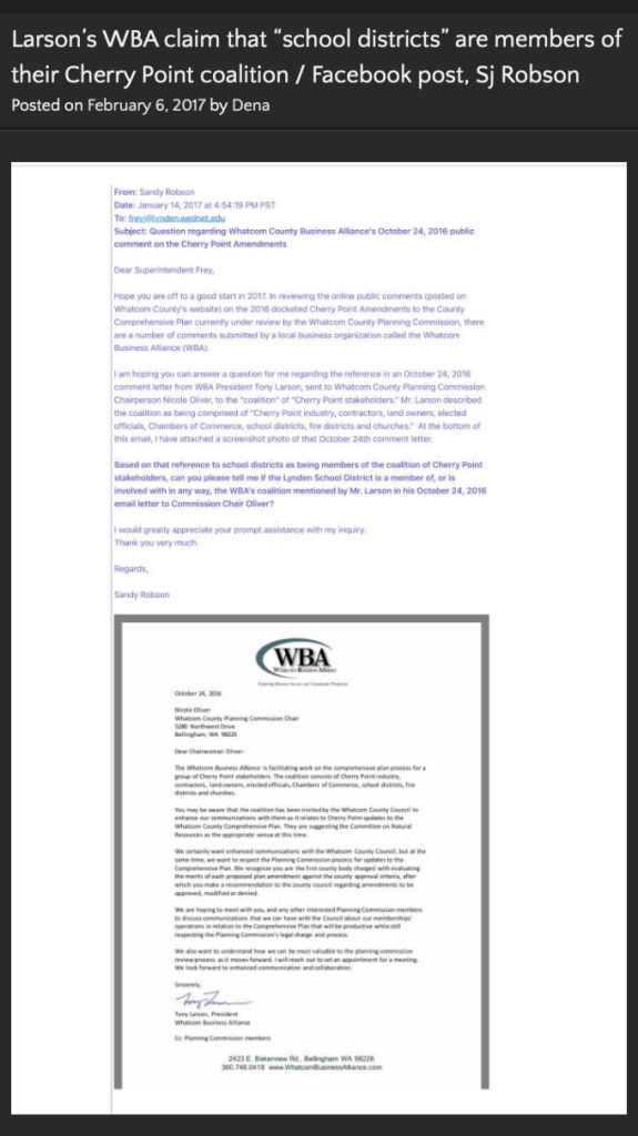 Common Threads Northwest and WBA leadership is advocating for allowing the expansion of an unhealthy and disproportionate reliance on fossil fuel industries out at Cherry Point as a source of income for our community. Their encouragement of expansion of these dangerous industries at Xwe’chi’eXen (Cherry Point), and adjacent to Xw’ullemy (the Salish Sea) also threatens the treaty rights and cultural lands of Lummi Nation.