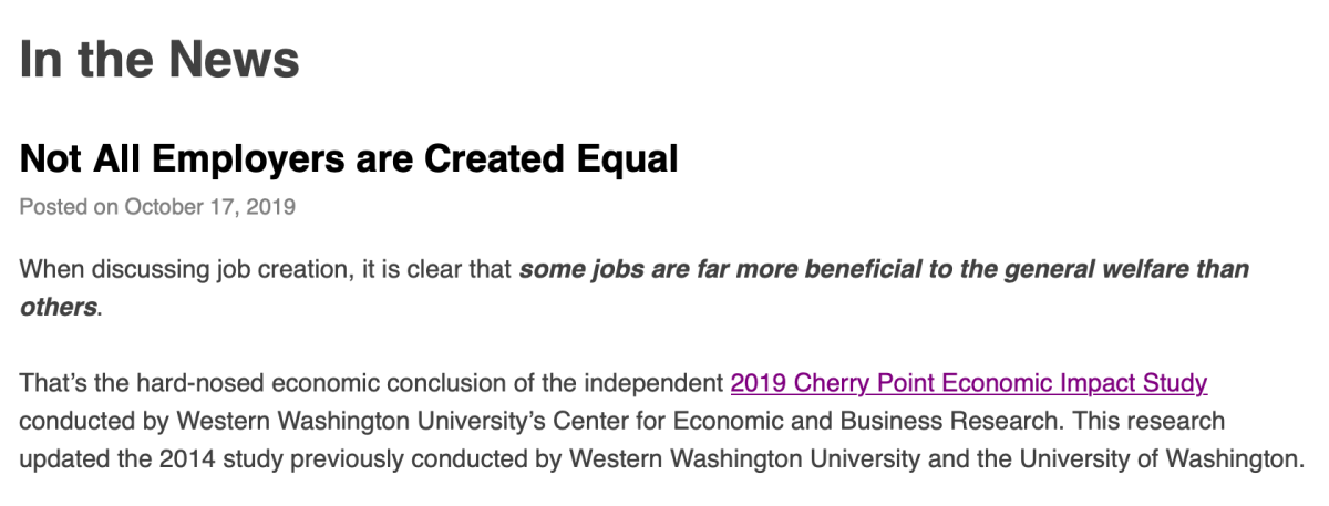 Screen Shot 2019-12-13 at 5.37.08 PM Published December 13, 2019 at 1680 × 640 in Whatcom Business Alliance’s new ‘project’ to protect Cherry Point refineries’ ability to expand fossil fuel operations / Noisy Waters Northwest ← Previous Next →