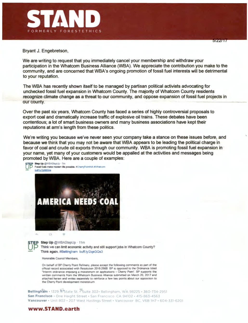 stand stand.earth letter wba 1 Screen Shot 2020-01-12 at 1.14.33 PM Published January 12, 2020 at 1030 × 1338 in Volunteer for Common Threads Northwest fails to back up claims against newly appointed Washington State 40th District Rep. / Noisy Waters Northwest Next →