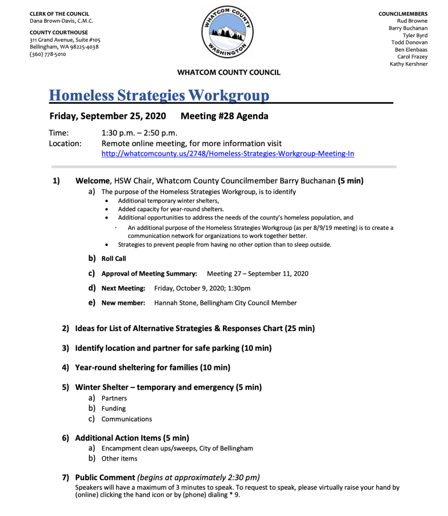 Fall, wind, and rain are here. Late-November, (which is the last time severe weather shelters were offered) is two months away. At Friday’s 1:30 p.m. Homeless Strategies Workgroup meeting, 5 minutes are scheduled for discussing Winter Shelter (temporary and emergency) and 5 minutes are scheduled for discussing Encampment clean-up/sweeps. How are these critical topics not a priority topic when people who are unsheltered are in positions -right now – to have their tarps and tents either blow away or be flooded, and freezing temps are weeks away?