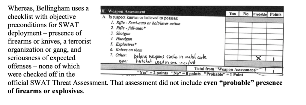 Months later, on April 24, 2021, the Whatcom Democrats passed a “Resolution on the aggressive sweep of Camp 210, calling for police demilitarization.” The militaristic aspects of the sweep at City Hall on January 28, 2021 were pointed out and the inappropriate deployment of SWAT teams that day was documented.