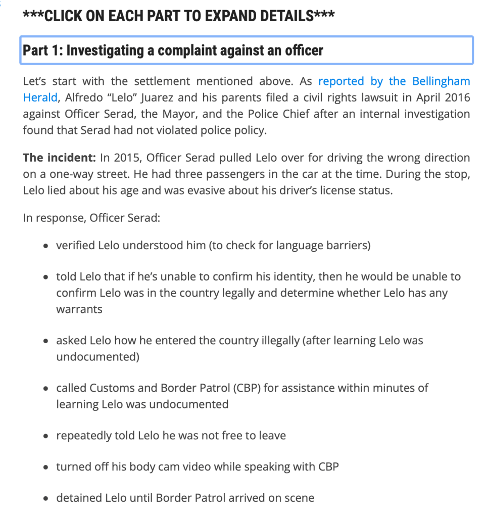 Here’s the link to access their full review of Bellingham Police Department’s internal investigation regarding one of their officer’s handling of an incident involving 15 year old, Alfredo ‘Lelo’ Juarez, who ended up being detained at the Northwest Detention Center back in 2015 after being pulled over for a traffic stop: https://riveterscollective.org/2021/09/learn-why-we-believe-police-reform-is-necessary/