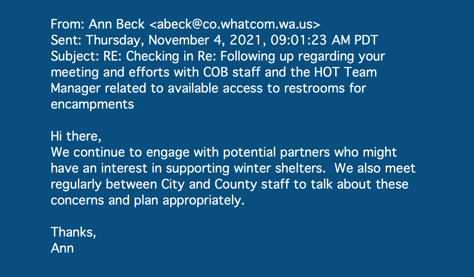 Bellingham City Council held their November 15, 2021 Special Meeting – Public Comment session tonight. These sessions are not recorded. I have been trying to record each of them, myself, so I have a record of what our community members want their representatives to know. And I keep and submit a written copy of my comments via EngageBellingham, because over half of Council Members do not attend the public comment session each week that they occur, so they apparently never get to hear what has been said.