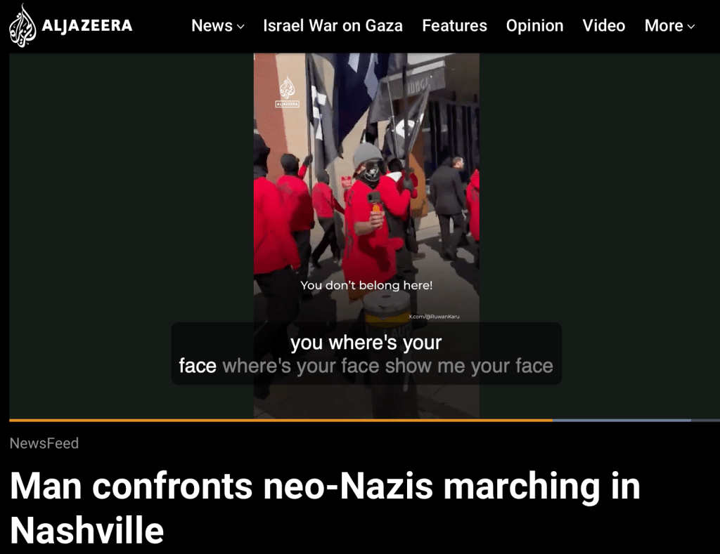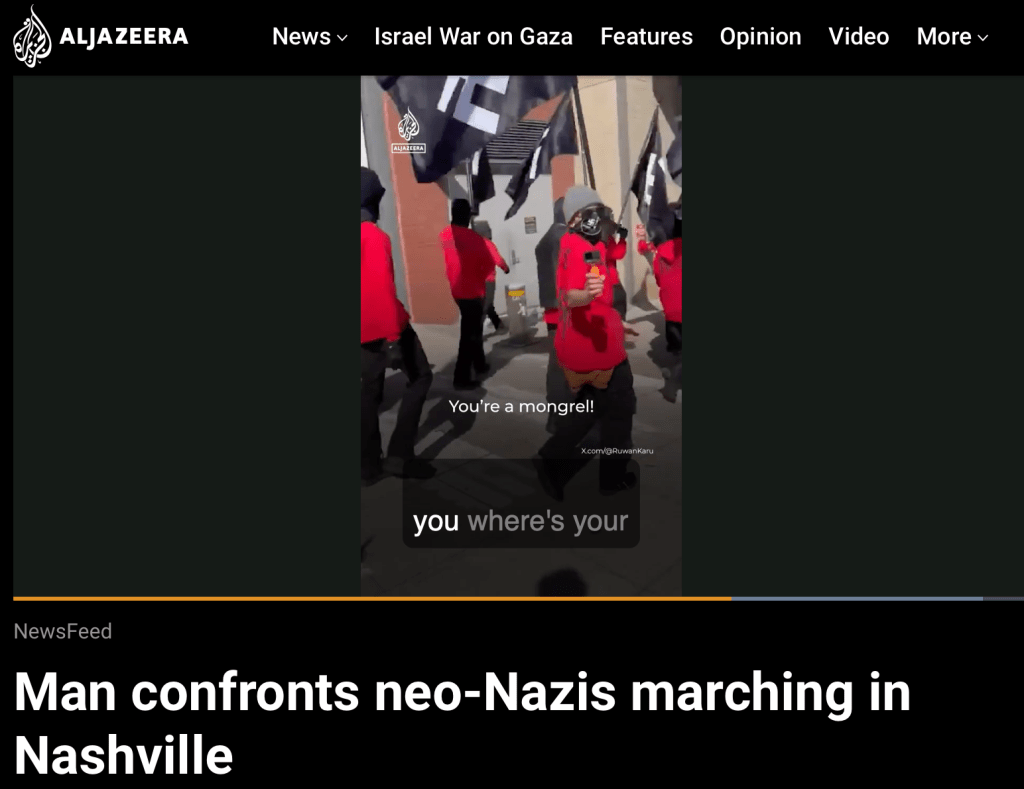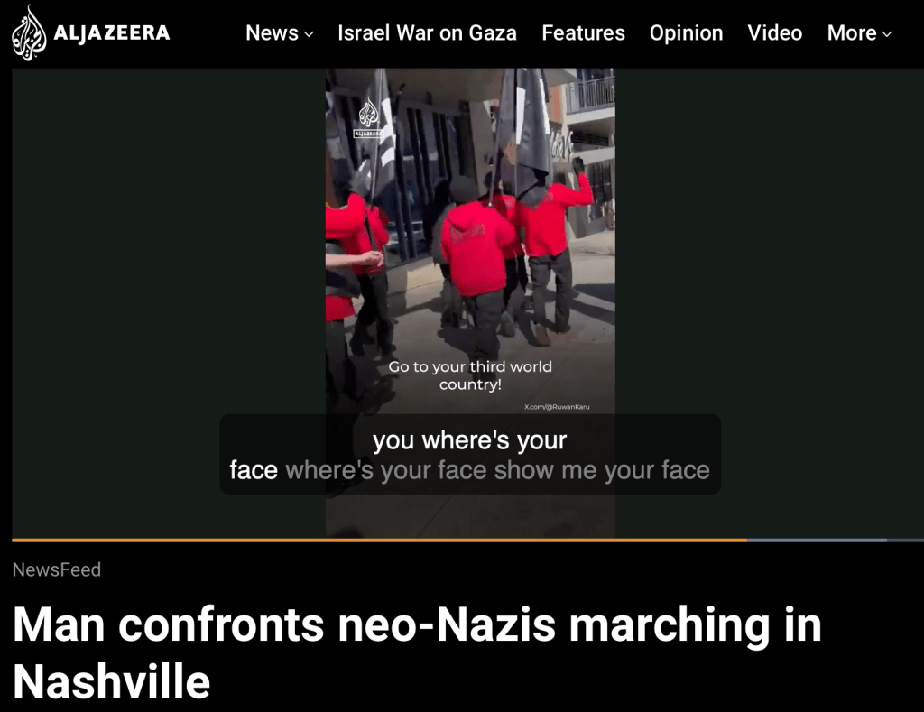Aljazeera had also posted a video of the Nazi march that had been recorded in Nashville where marchers could be heard chanting, “deport all Mexicans,” among other things.