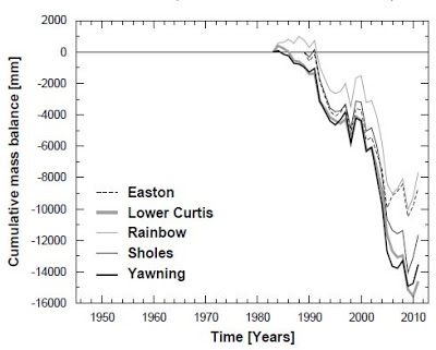 Cumulative mass balance for several north Cascades glaciers (Glacier Mass Balance Bulletin, 2013 2013_gmbb12.pdf)
